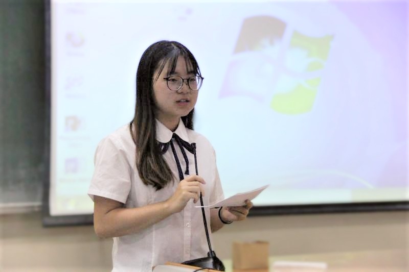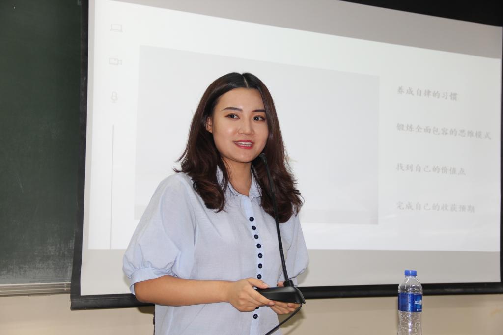 团学联还邀请到校宣讲团代表叶纹笑宇同学发表演讲,她以一个辩手的身份向新干事们传达了她在繁杂世界里收获的“视、听、说”,同学们从她的肺腑之言中收获了对工作、学习和生活的感悟。