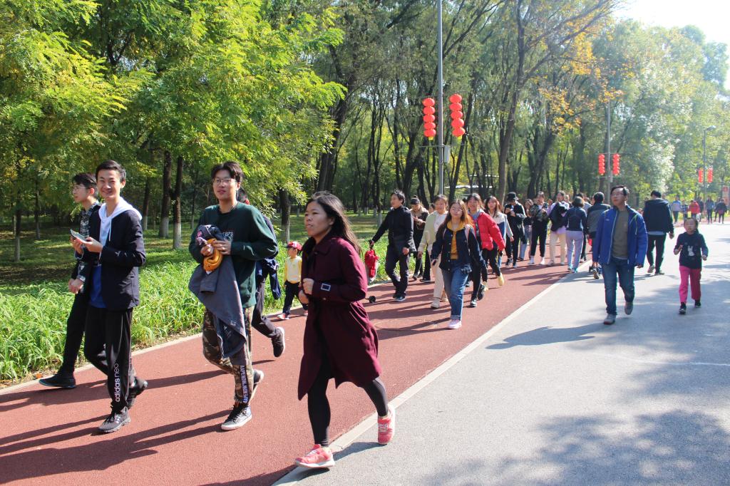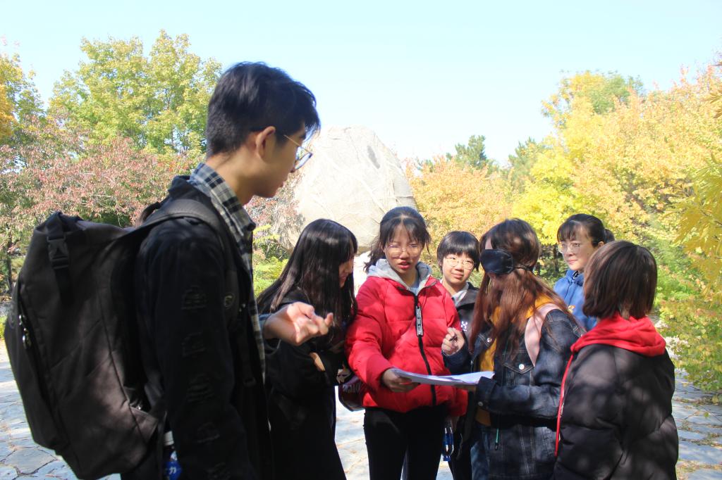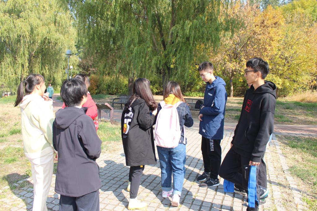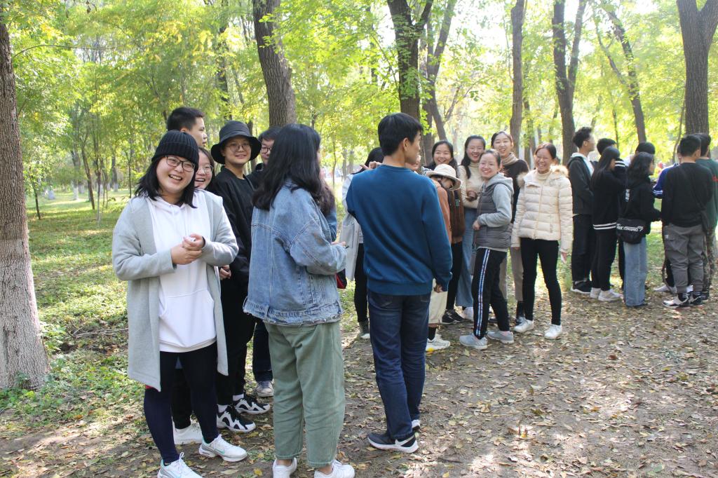 团学联主席团与各部门成员集体乘车前往奥林匹克森林公园。抵达目的地后,团队按照既定计划分成15支队伍进行竞速越野赛。每支队伍需同时从南园北门出发,自行规划线路,要求途经沉水廊道、共铸辉煌、奉献雕塑、夕拾台、仰山、天境及天元6个打卡地点并完成相应的游戏项目,最终抵达公园东门站。队员们结伴穿梭在树林中,一路欢声笑语。吸管运输与两人三足游戏中,队员们团结合作,齐心协力;穿越A4纸与蒙眼版你画我猜游戏中,队员们纷纷出谋划策,为队伍献智献力;在“说一却是二”游戏,与奉献雕塑合影中,也留下了同学们的青春身影。