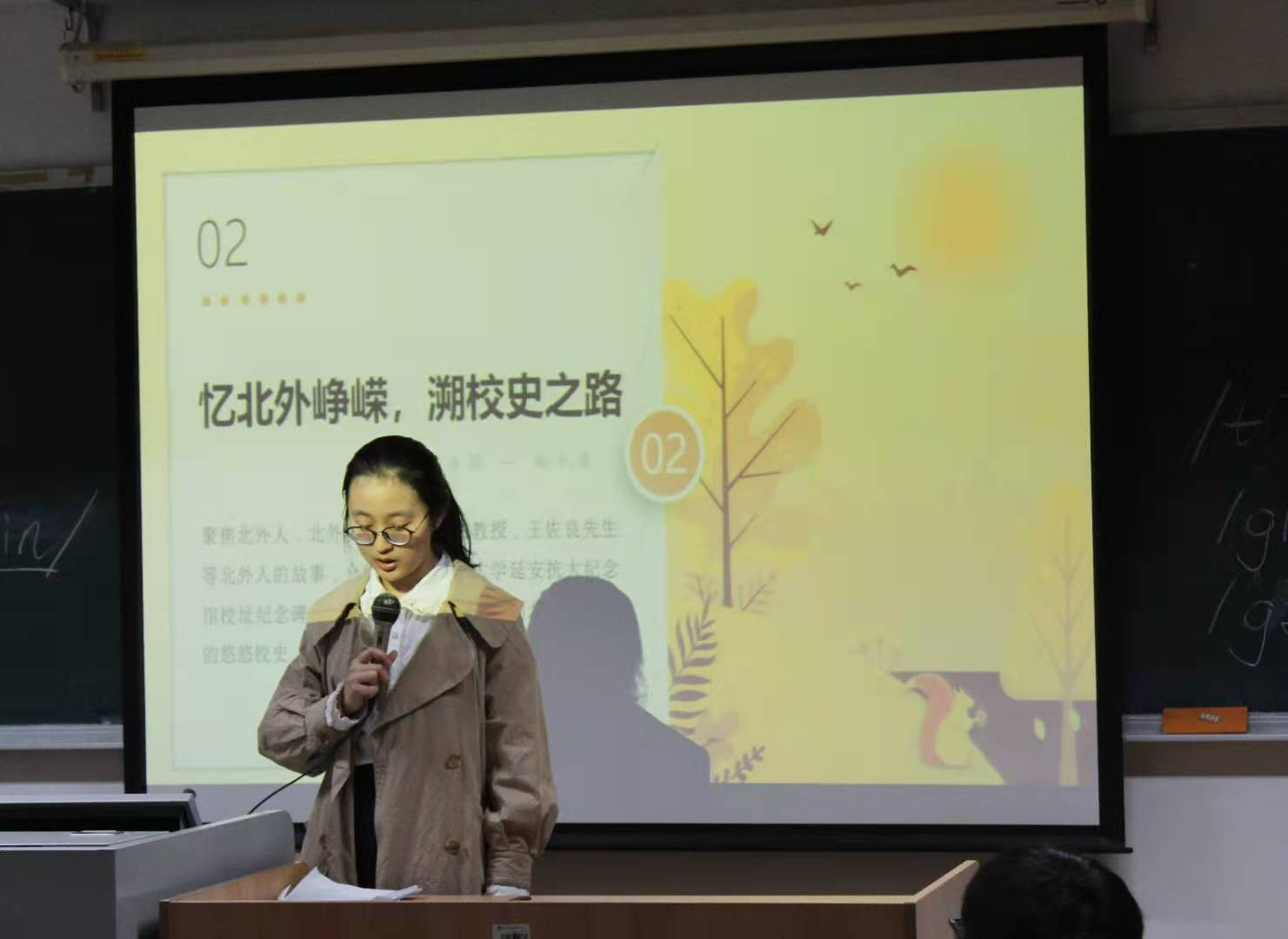 阿拉伯语学院2019级叶鸿翔介绍了学校的历史沿革,带领新生同学回溯国产视频