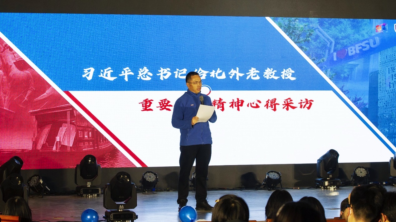 学子义不容辞的责任和义务。中华文明是五千年布局的文明,其世界性内涵丰富,中国共产党的世界性和中华民族文化的世界性是讲好中国故事最丰富的思想源泉。他指出,讲好中国故事,不仅需要学好汉语母语,还要精通世界语言英语,更要通过“复语复合”的方式提高技能水平,讲好中国故事。要用中国方案、中国智慧和中国倡议解决世界问题。到2050年中华民族实现伟大复兴之时,讲好中国故事的国际舞台上一定会出现更多国产视频