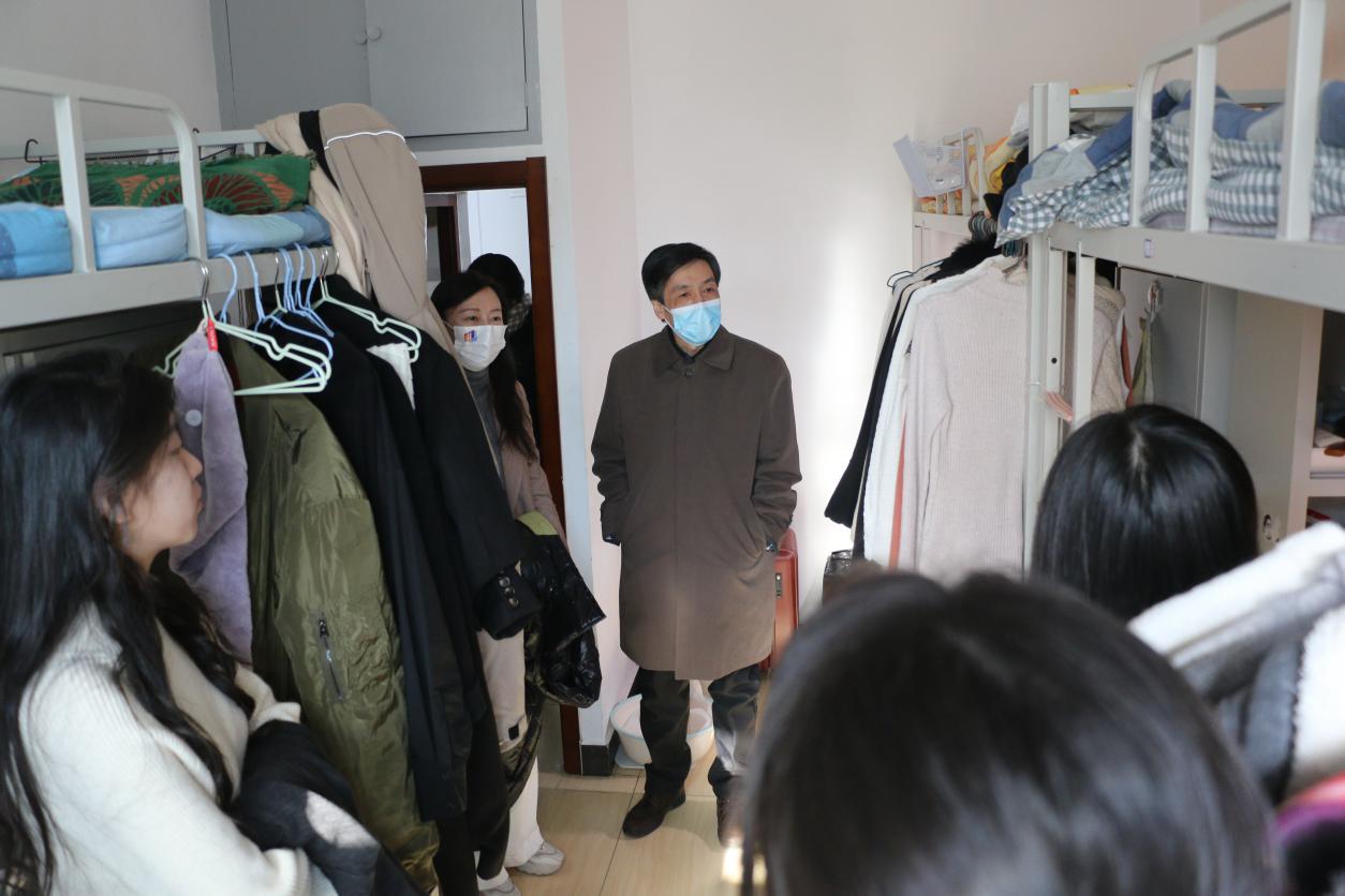 院长张剑、党总支书记王明欣带领相关工作人员对预科班学生宿舍进行消防安全及卫生大检查。主要检查学生宿舍内的消防设施、安全隐患及卫生情况。