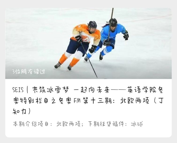 全体学生开展以冰雪运动为主题的视频剪辑大赛——“我与冬奥视频制作大赛”,旨在增进同学们对冬奥会、冬残奥会和冬季体育相关知识的了解,推广冰雪文化、弘扬奥运精神。该活动以公众号为平台宣传,得到同学们的广泛关注和积极响应。