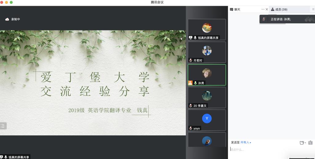本次沙龙以线上腾讯会议的方式进行,有35人参加,由英学职沙龙组的孙男主持。