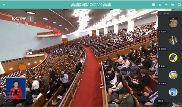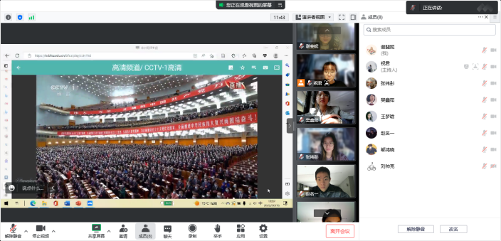 在国产视频 会议室,领导班子成员和师生代表共同观看直播。按照学校安排,党总支书记和院长在晨读厅主会场观看直播,60名学生代表在千人礼堂观看直播。全体教师和本科生、研究生、预科生在线观看直播。