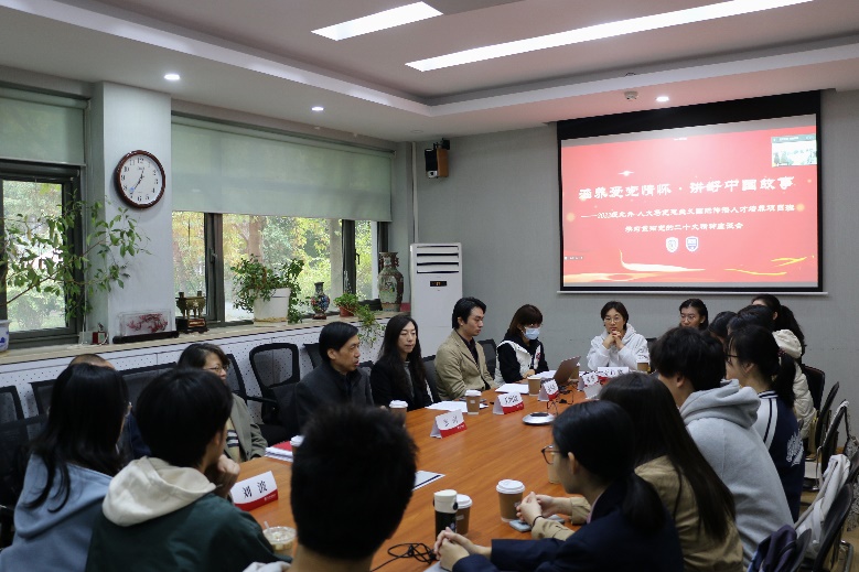 徐成成、岳淙萱、贾世炜等同学先后分享了自己参加国传项目的初心、对推动中国化马克思主义走向世界的理解,以及对自己未来发展的展望。同学们一致认为,新时代青年应加强对马克思主义理论和中国共产党党史的学习和理解,把党的二十大精神内化于心外化于行,积极向世界传递中国智慧、传播中国声音、讲述中国故事。随后,各位同学就在学习生活中遇到的问题和困惑与老师们进行深入交流。他们表示,在未来四年的学习中,要充分利用两校优质学习资源,不断提升英语水平和马克思主义理论水平,助力中国更好走向世界、世界更好了解中国,为建成社会主义现代化强国,实现中华民族伟大复兴,推动构建人类命运共同体贡献青春力量。