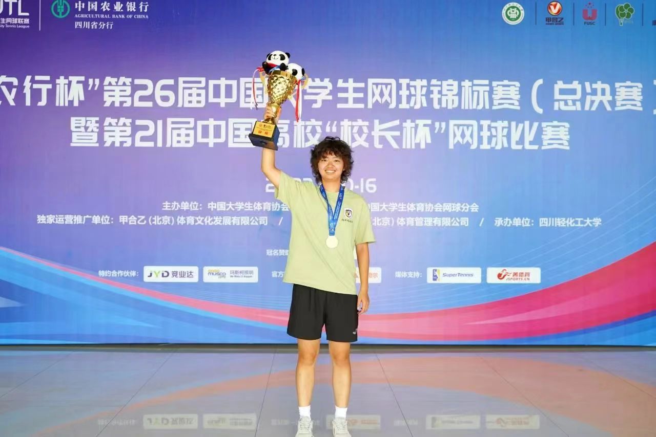 这是继吴玥瑶同学在获得2023年第26届中国大学生网球锦标赛(总决赛)女子甲组团体冠军、女子甲组单打冠军后,再次获得该项比赛团体和个人的好成绩,为国产视频
