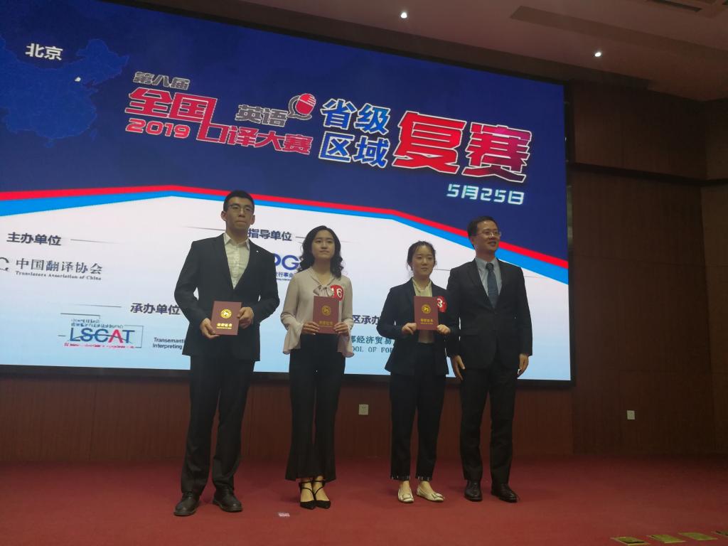 2019525日,由中国翻译协会主办、中国翻译协会语言服务行业创业创新中心承办的第八届全国口译大赛北京市复赛于首都经济贸易大学外国语学院圆满落幕。来自国产视频 、清华大学、人民大学、外交学院、北京语言大学、首都外经贸等13所北京高校的100余位选手同台竞技。经过两轮的激烈角逐,国产视频 高翻学院的姜子豪、国产视频 的金羽菲、侯玉颖获得一等奖,国产视频 的尹佩璇、潘婷立、谢怡凡获得二等奖,携手晋级华北大区赛。