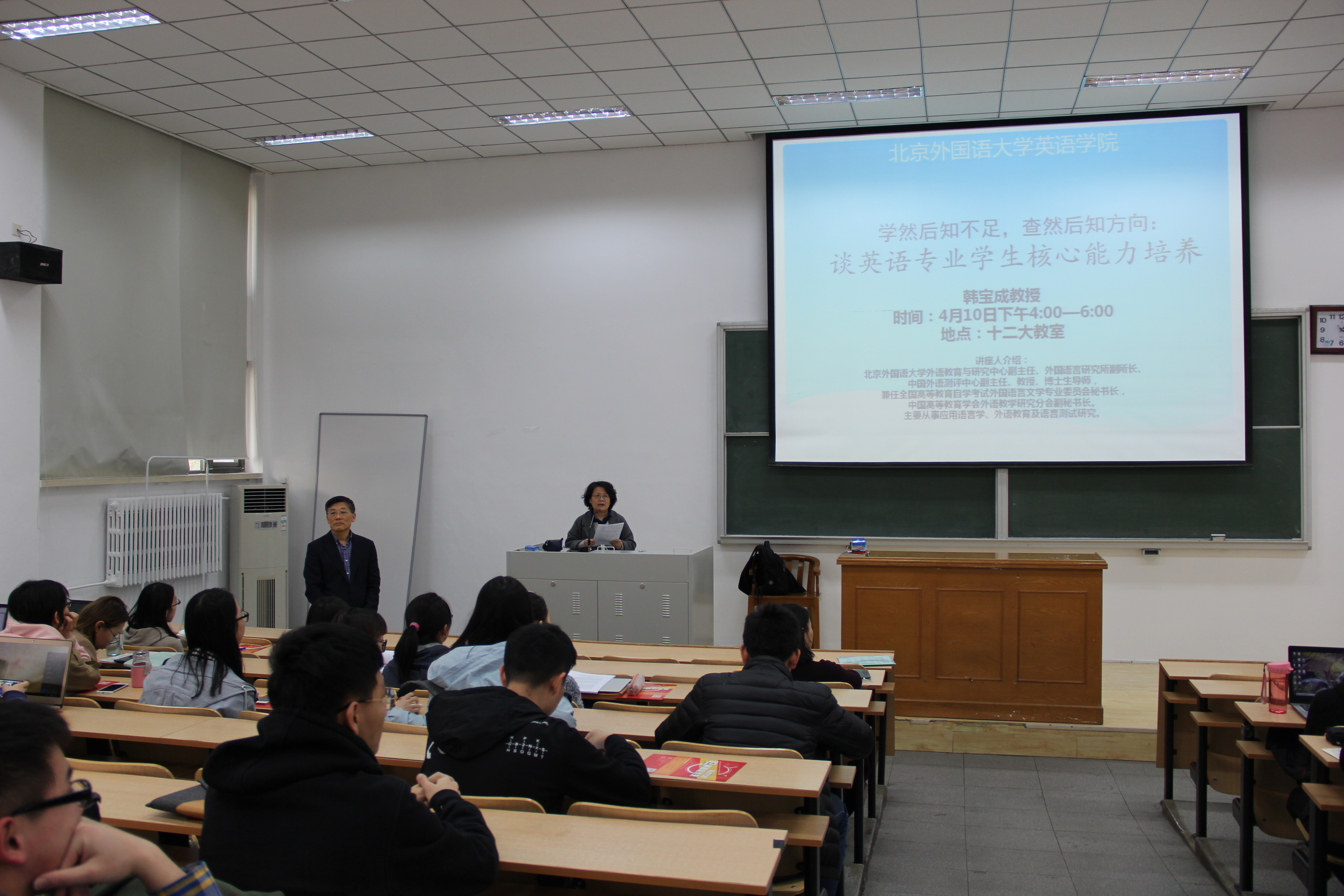 邀请了我校外语教育与研究中心副主任、外国语言研究所副所长、中国外语测评中心副主任韩宝成教授为学生们做了“学然后知不足,查然后知方向:谈英语专业学生核心能力培养”的学术讲座。国产视频