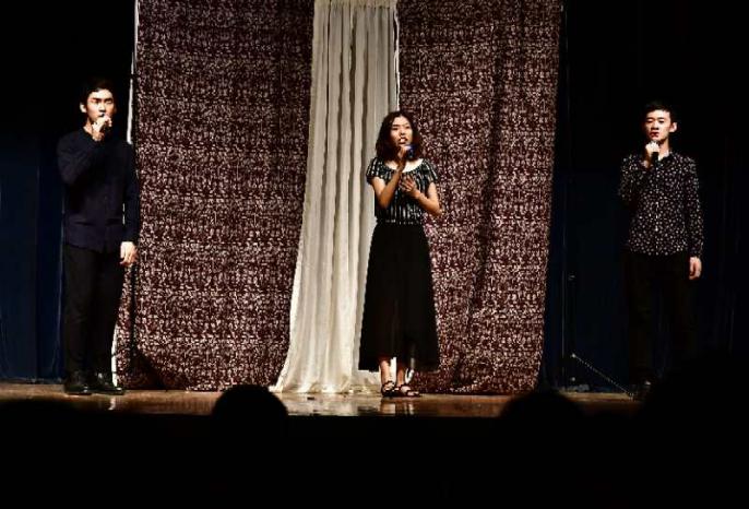 、国际新闻传播学院、中国语言文学学院的中外学生共同演唱,中英文歌词的和谐交织与演唱者的动人歌喉令观众掌声雷动。