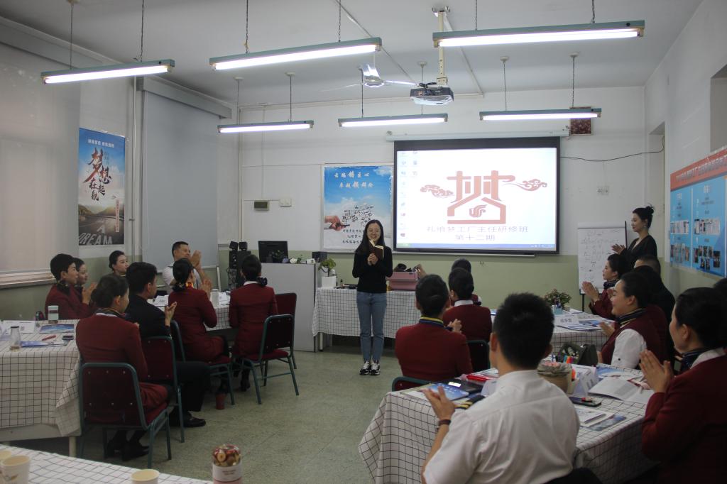 本期礼飨梦工厂主任研修班的主题是“如何打造职业形象”。支部党员一进教室,近二十位国航机组人员已然就位。虽然不在工作时间,但他们仍然身着制服,妆容精致,坐姿挺拔,从中不仅能够看出国航方面对此次活动的重视,更能看出“真诚、睿智、优雅”的职业形象已经和他们本人融为一体。