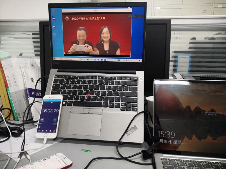 口译课团队晋级“外研之星”全国半决赛。半决赛教学展示教师为邓小文、王海若,教学展示内容为“Intercultural Communication Competence in Consecutive Interpreting”。经过视频录制、现场回答评委提问等环节,国产视频