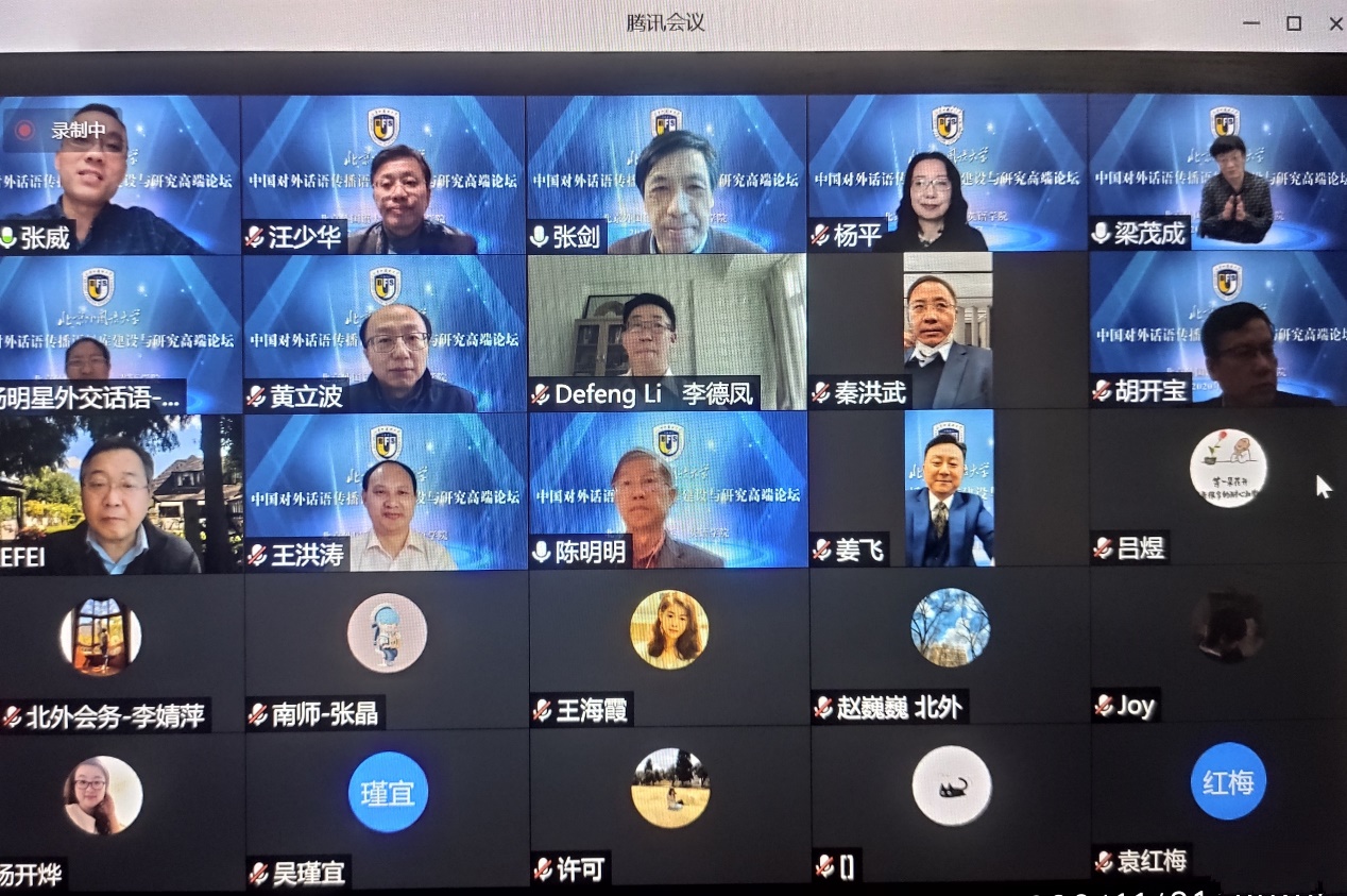 主办的中国对外话语传播语料库建设与研究高端论坛在腾讯视频会议系统上进行。