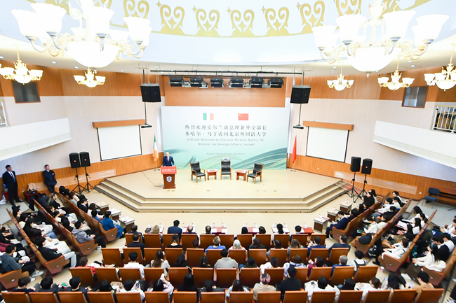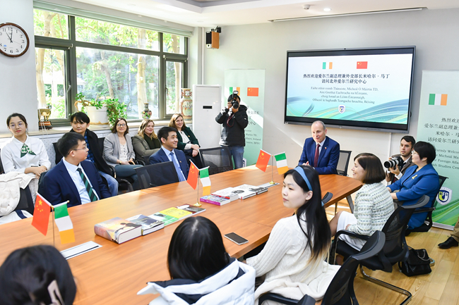 爱尔兰研究中心,与爱尔兰研究中心及学习爱尔兰语课程的师生座谈交流。他对爱尔兰研究中心取得的成就表示祝贺,并指出,中爱教育合作大有可为,鼓励更多学生赴爱尔兰学习交流。