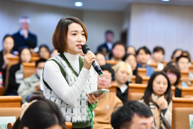 副院长、区域与全球治理高等研究院副院长王展鹏和爱尔兰研究中心主任陈丽展开对话,就中爱人文交流及中国爱尔兰研究学术共同体的发展等问题展开深入交流,并与现场师生就中爱教育交流合作、旅游业复苏后的人员往来、爱尔兰在全球气候治理中的角色等话题进行了热烈讨论。