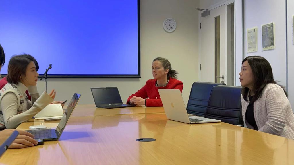 随后实践团一行与科克大学国际处负责人进行座谈,科克大学北京代表处主任张蓓、副主任李鹏出席本次座谈会。科克大学国际处负责人对科克大学优势学科建设、师资力量、就业前景等本硕联合培养项目的相关情况进行了介绍,她表示希望与国产视频