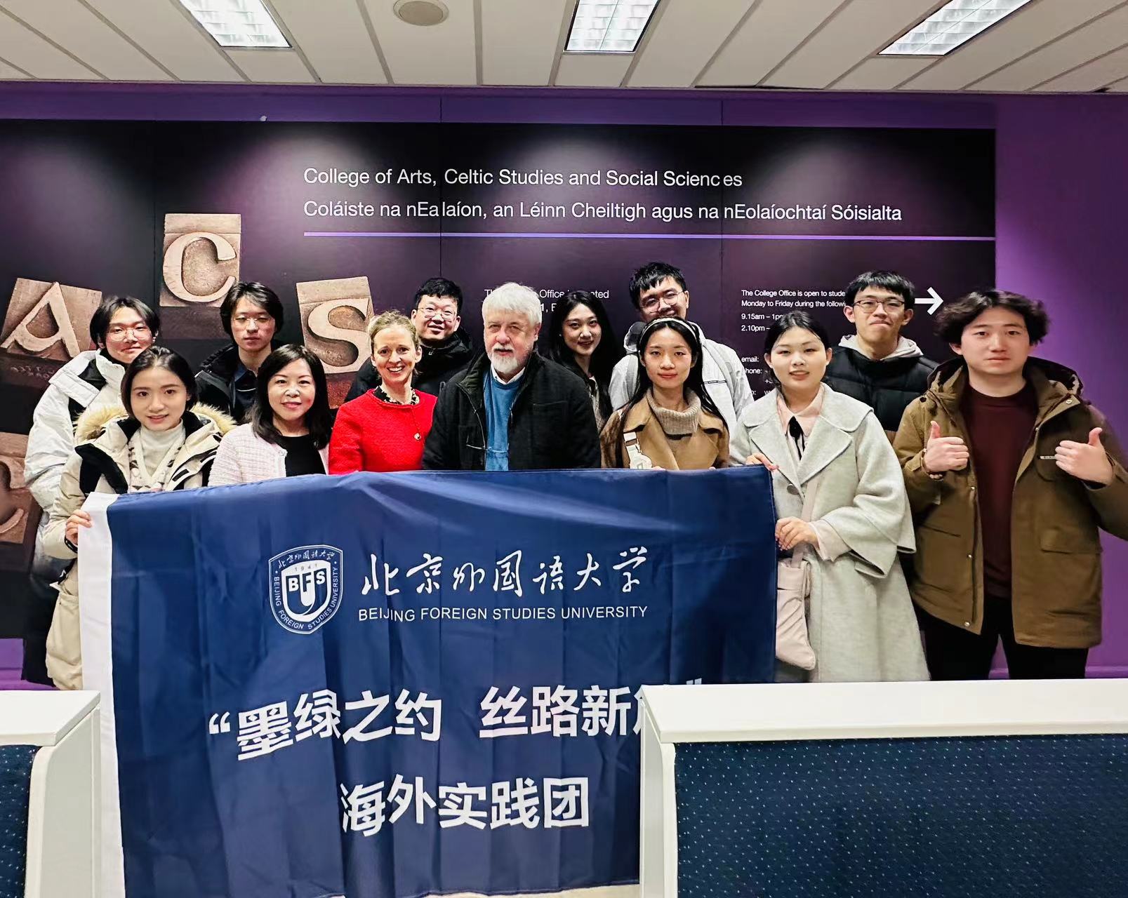 “墨绿之约,丝路新篇”海外实践团于当地时间2024年1月23日晚抵达爱尔兰科克,1月24日正式访问科克大学,正式开启为期10天的爱尔兰调研之旅。实践团成员共10人,由张珺涵、宗辰两位老师带队,旨在研究中国在爱尔兰海外影响力。