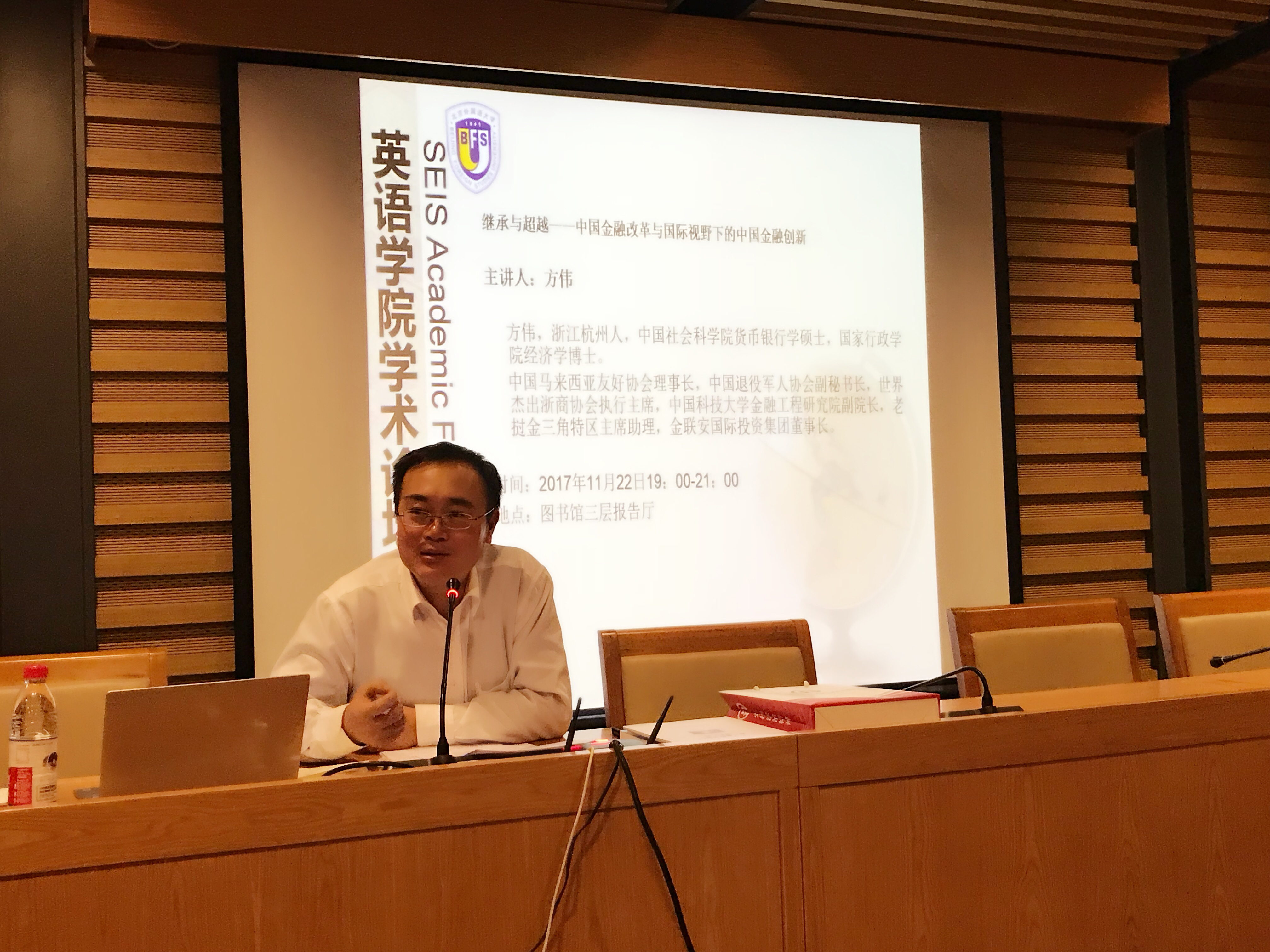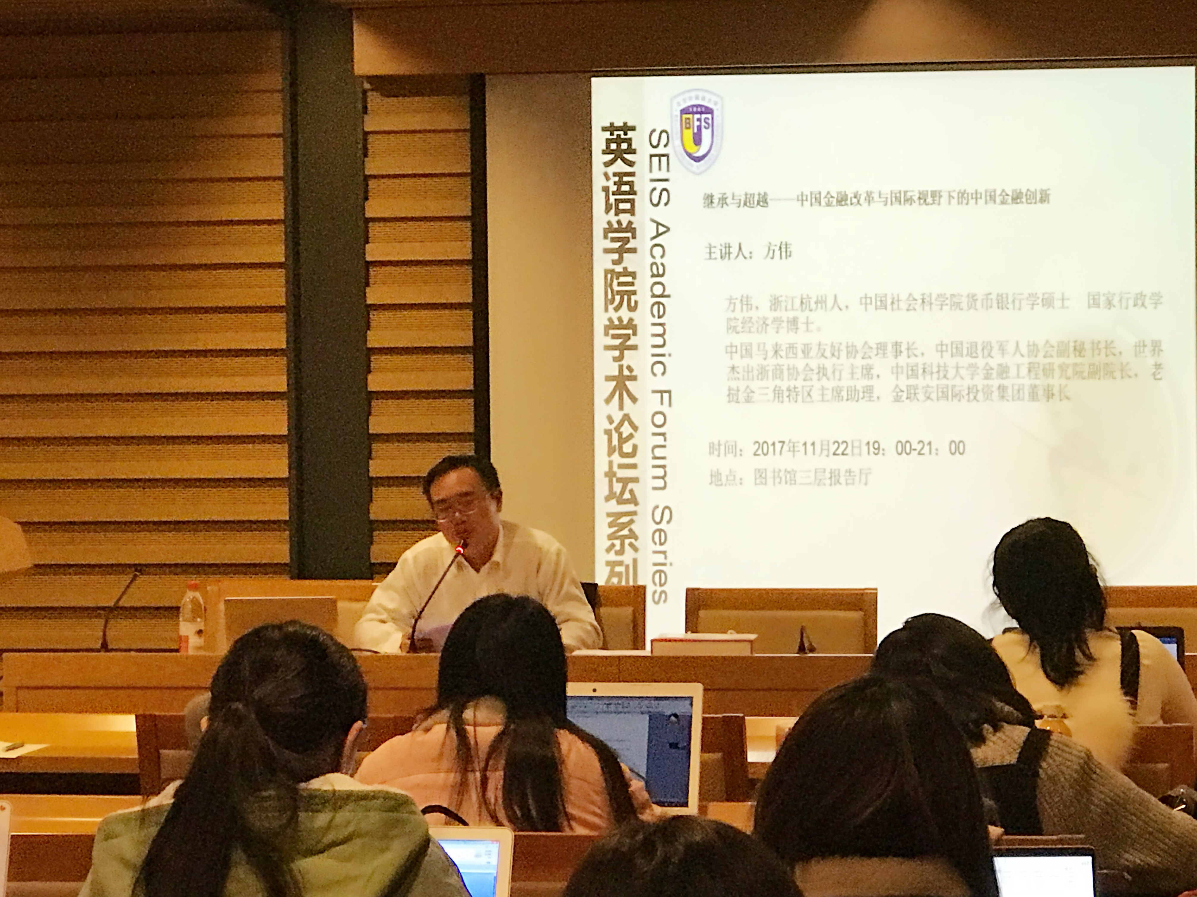 ——2017年11月22日晚7点,图书馆三楼学术报告厅,世界杰出浙商协会执行主席、金联安国际投资集团董事长、国家行政学院经济学博士方伟老师为国产视频 师生作讲座,题为“继承与超越——中国金融改革与国际视野下的中国金融创新”,讲座由董宜坤博士主持。讲座后,英学职针对同学们在学业与职业选择规划上的困惑、尤其是众多日后有志从事金融行业相关工作的疑问,对方伟博士进行了专访。