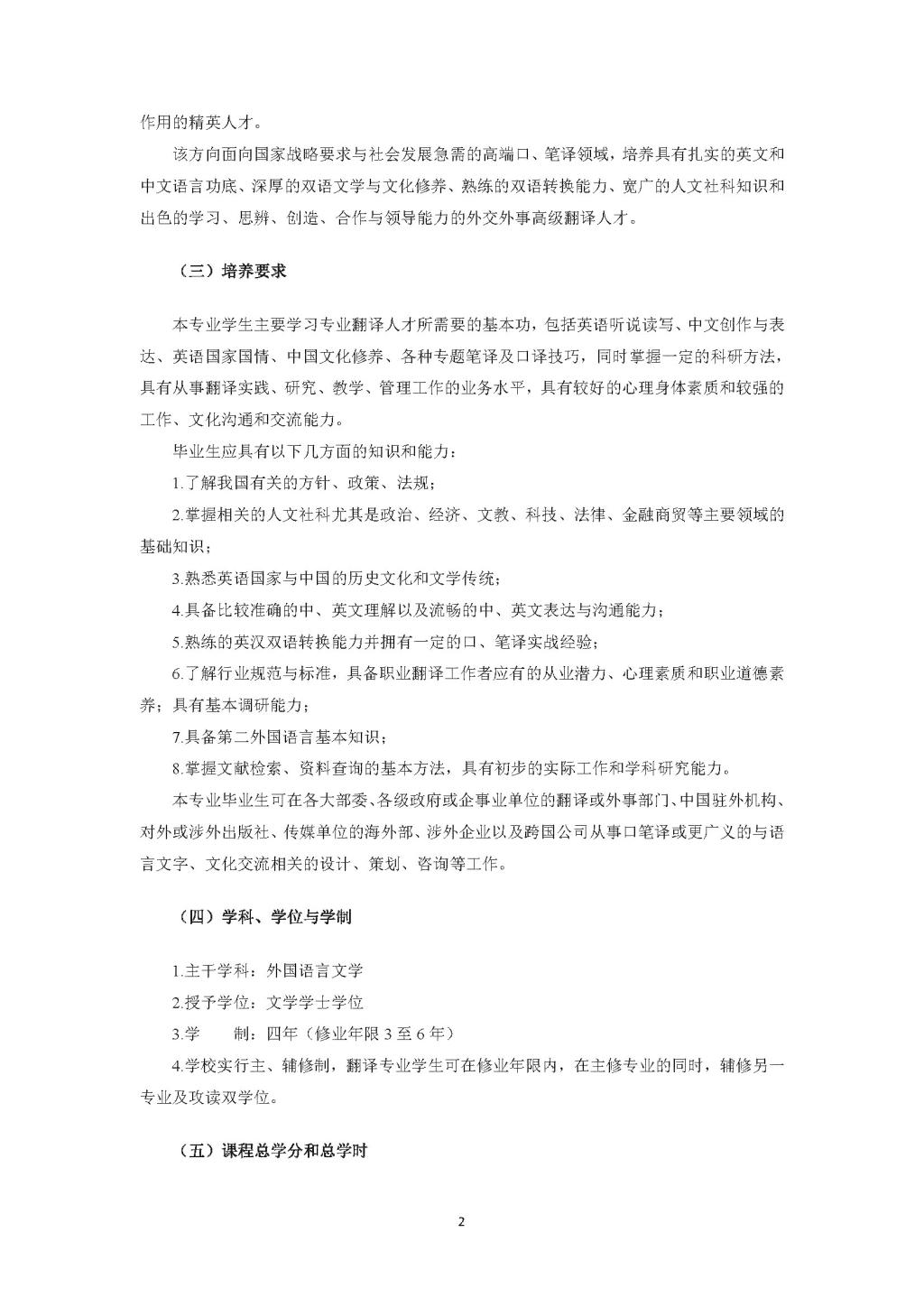 国产视频 翻译专业本科培养方案(2016)