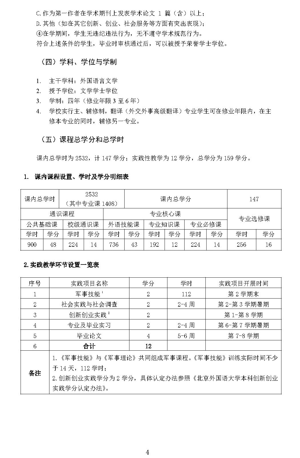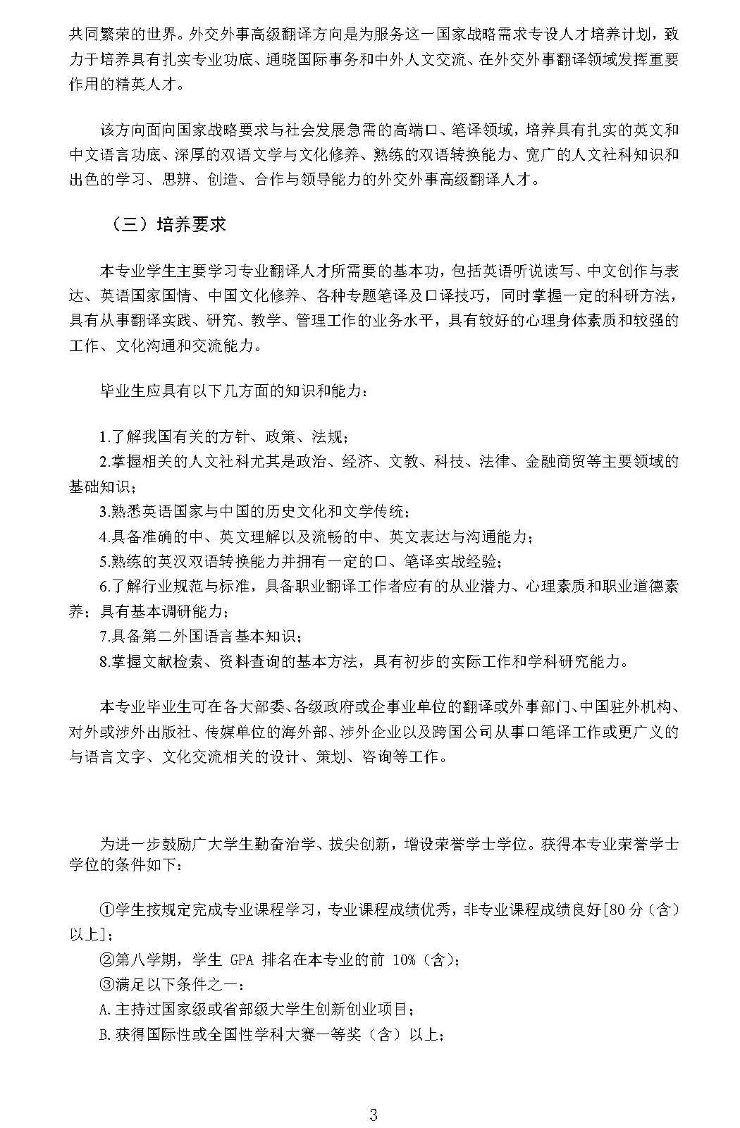 国产视频 外交外事高级翻译专业本科培养方案(2020)