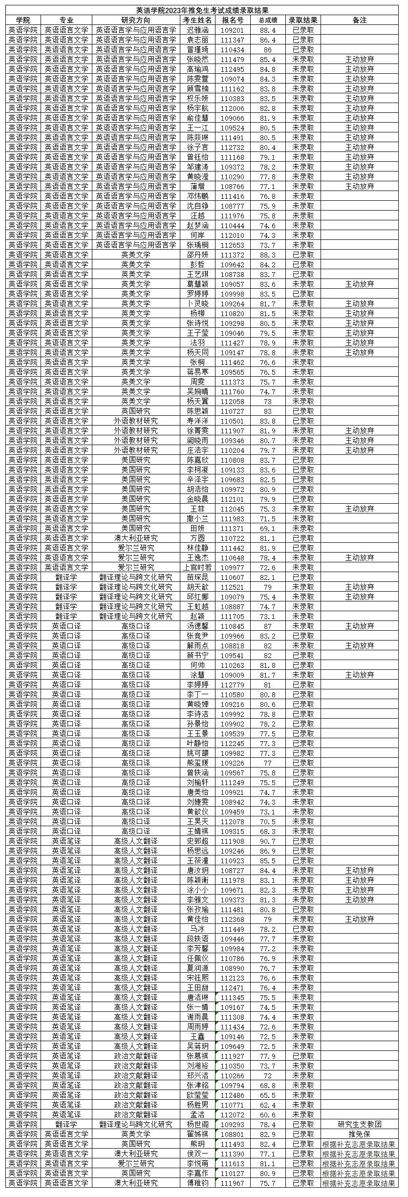 2023年应届本科生免试攻读硕士学位研究生入围名单